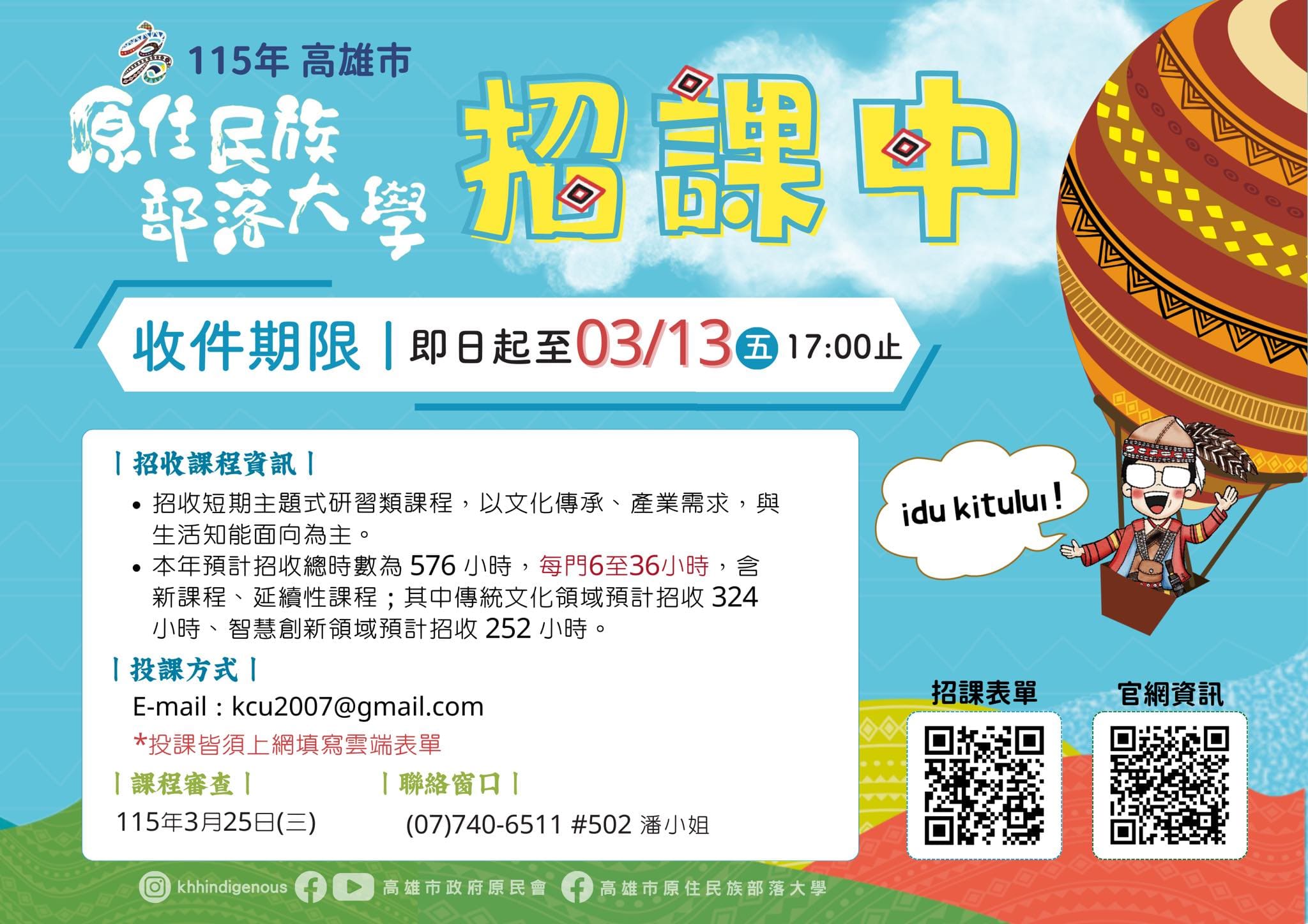 高雄市原住民族部落大學115年研習類課程課程招收簡章暨招課海報